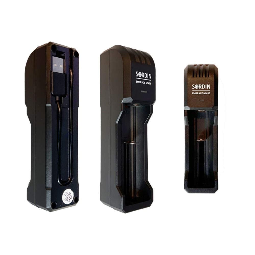 Kompakt og praktisk oplader til 3,7 V Li-ion-batterier (14500 og 18650) – ideel som back-up-oplader til dine Sordin-høreværn og andet elektronisk udstyr.