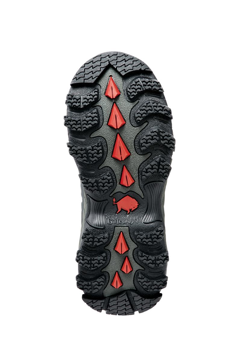 Støvlen er opbygget med et 17" skaft, der giver god dækning i terrænet, og konstruktionen er tilpasset brug på ujævnt underlag. Pasformen er smallere omkring fod og skaft, og ydersålen er udformet med fokus på stabilt fodfæste.
