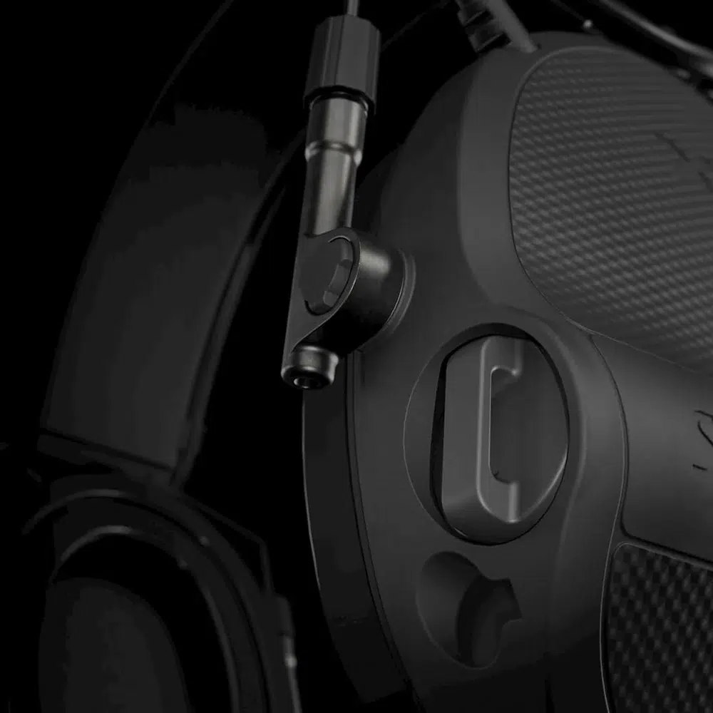 Skift mellem konfigurationer sker via et simpelt bayonet-fæste, så du kan ombygge headsettet uden værktøj. Det betyder, at du hurtigt kan tilpasse det – uanset om du står på skydebanen, er til træning eller i felten. Det er funktionel modularitet, der faktisk gør en forskel i praksis.