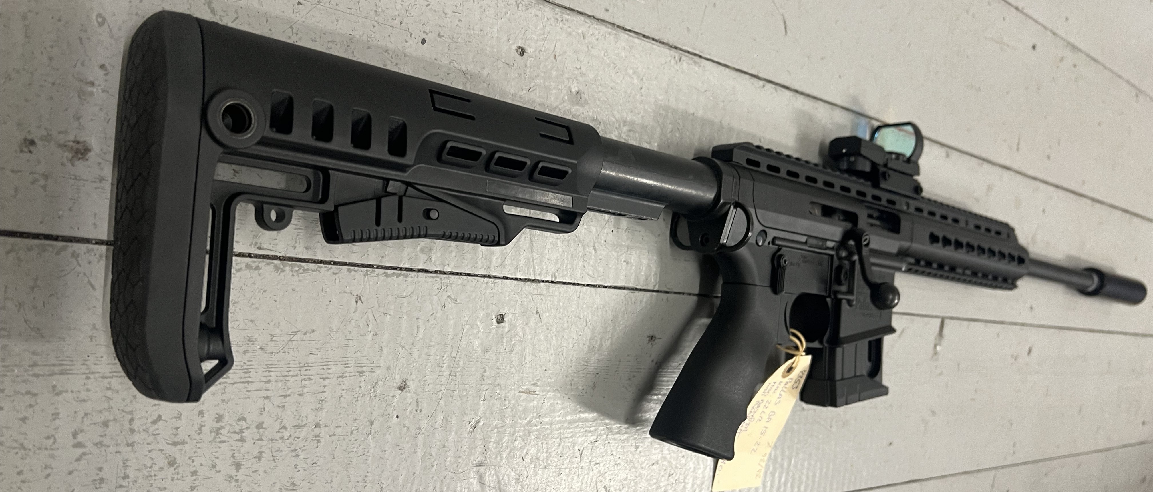 Der medfølger et billigt red dot sigte af ukendt mærke, som fungerer, men betragtes som en simpel/entry-level optik.