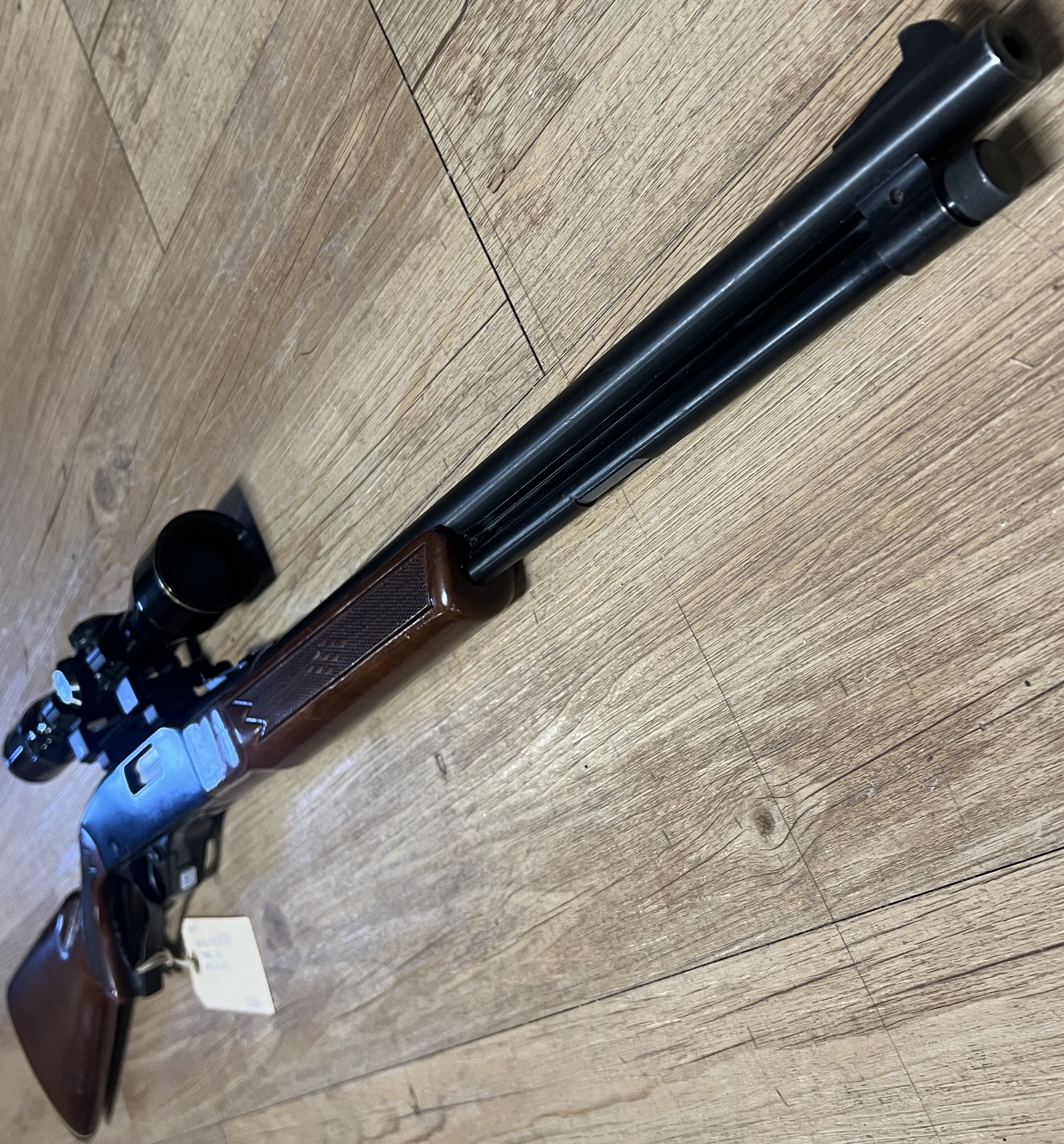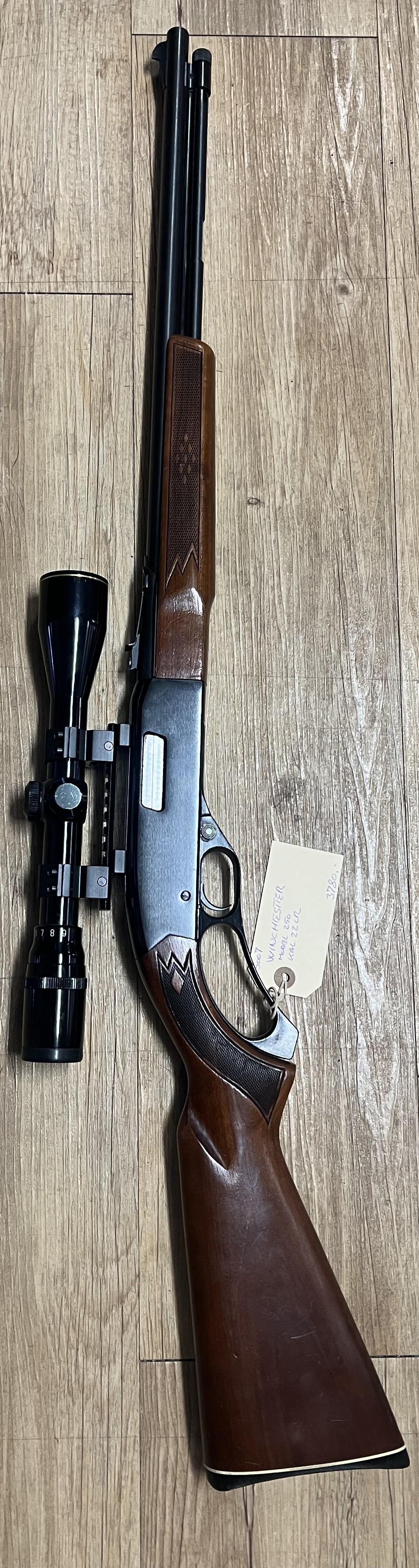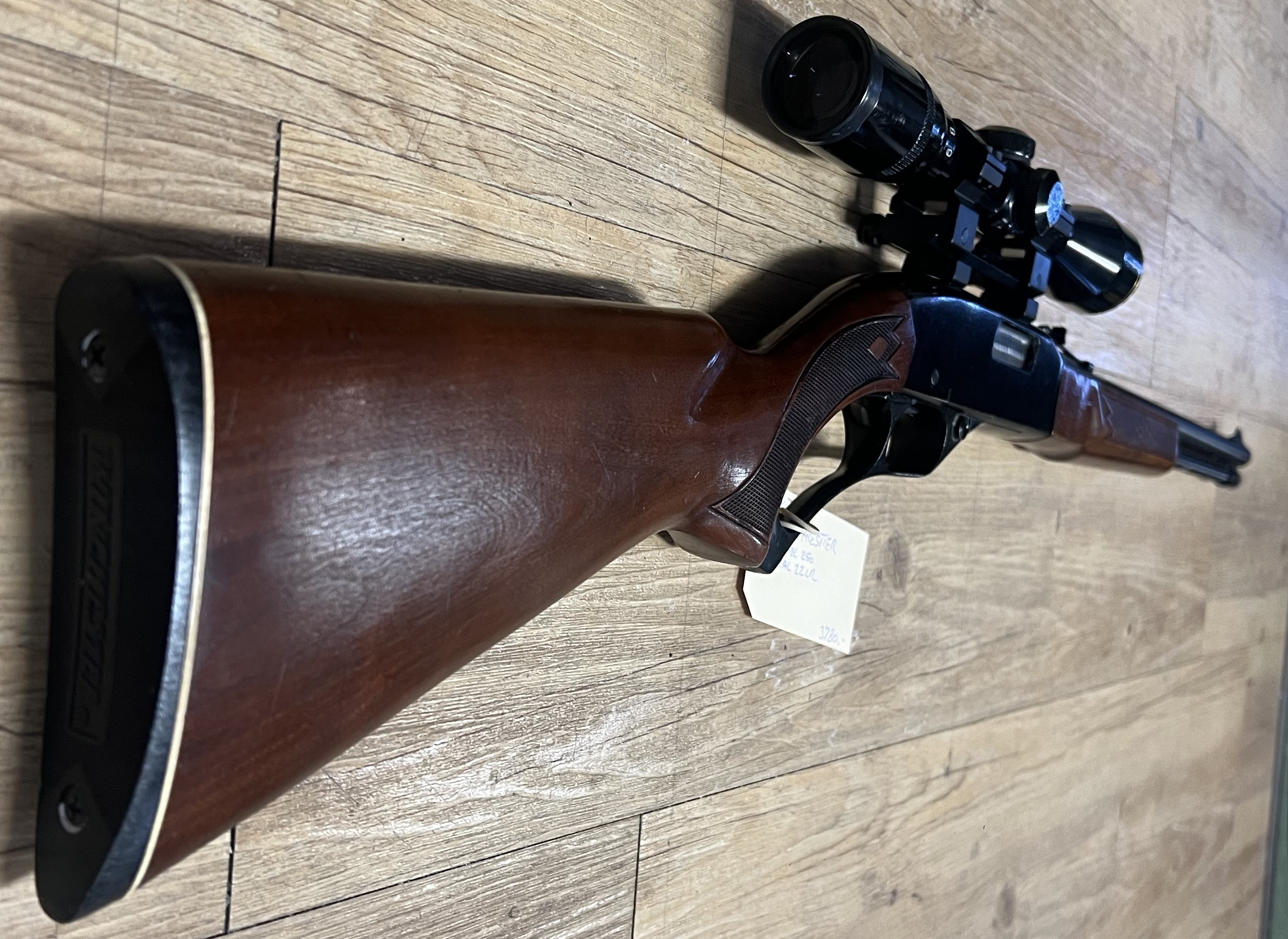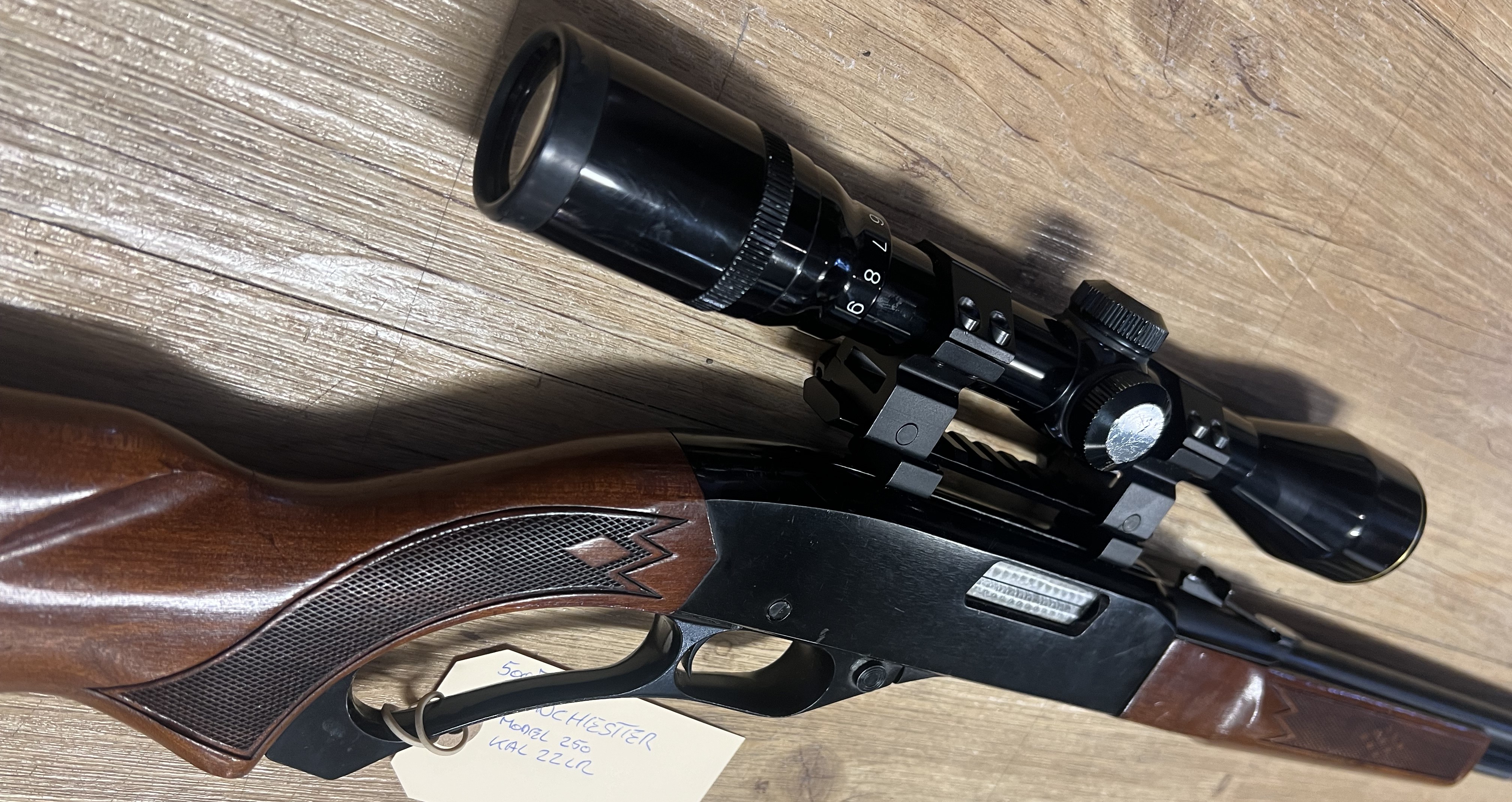 Brugt Winchester 250 i kaliber .22 LR med almindelige brugsridser efter brug. Riflen fremstår funktionel og driftssikker – en klassisk halvautomatisk salonriffel velegnet til både fritidsskydning og træning.