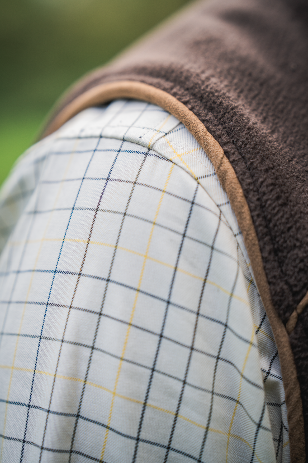 · Kontrastfarvet piping på indersiden af halsen