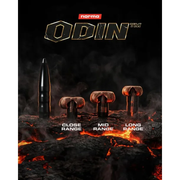 Norma Odin .30-06 Springfield 10,5 g / 162 gr er en blyfri riffelpatron med 100% kobberkugle. Kuglen er konstrueret til kontrolleret ekspansion, høj restvægt og dyb gennemtrængning.