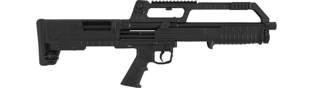 Bullpup-pumpgun i kaliber 12/76 med 55 cm løb. Kompakt, kraftfuld og ideel til taktisk brug. Med Picatinny-skinne, justerbare sigtemidler og stålforstærket løb er den bygget til pålidelig præstation og høj fleksibilitet.